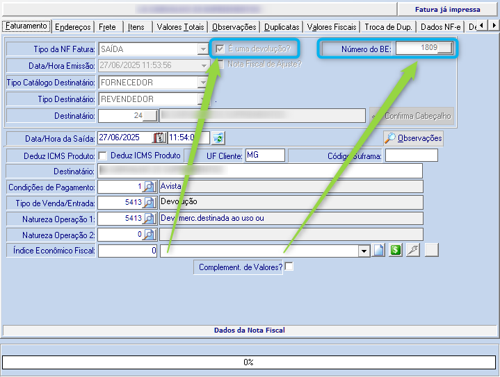 Quando houver a necessidade de realizar uma devolução de mercadoria, e esta operação exigir a identificação do Compromisso Financeiro associado ao BE mencionado, o sistema DON Corporate dispõe de uma rotina específica que atende a essa finalidade.