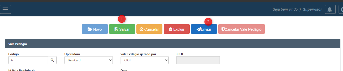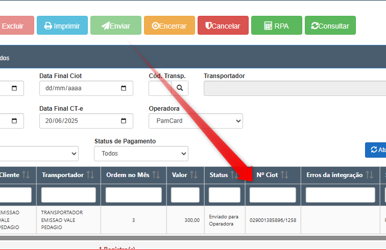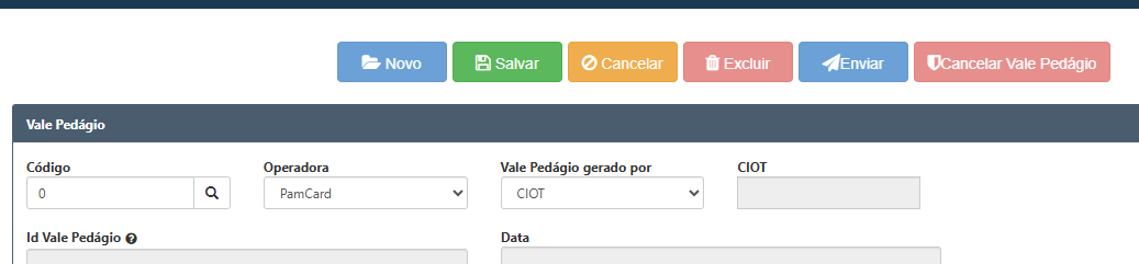 A operadora PamCard que estamos utilizando no exemplo, já emite o Vale Pedágio automático assim que é emitido o CIOT, caso exista pedágio na operação realizada.